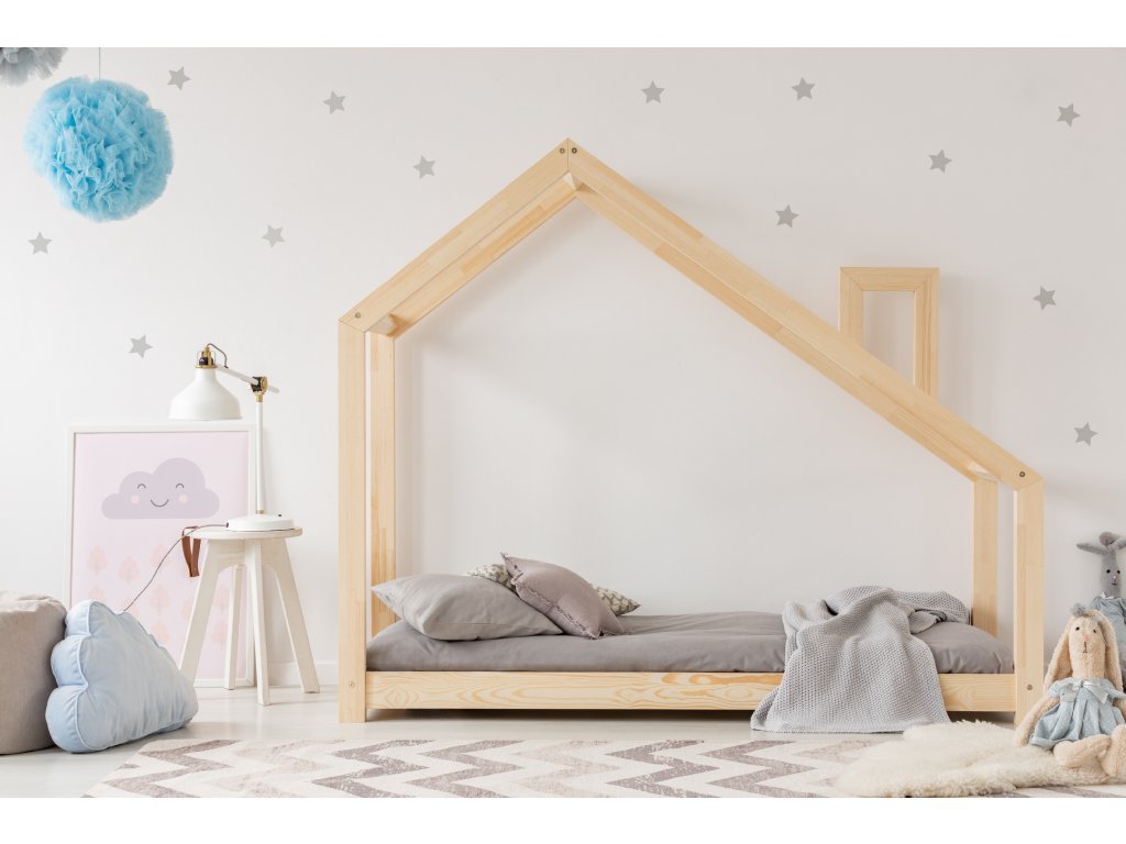 Originální postel ve tvaru domku s komínem v jednoduchém designu je vhodná nejen ke spánku, ale díky pevné a masivní konstrukci také ke hře a dovádění během dne.