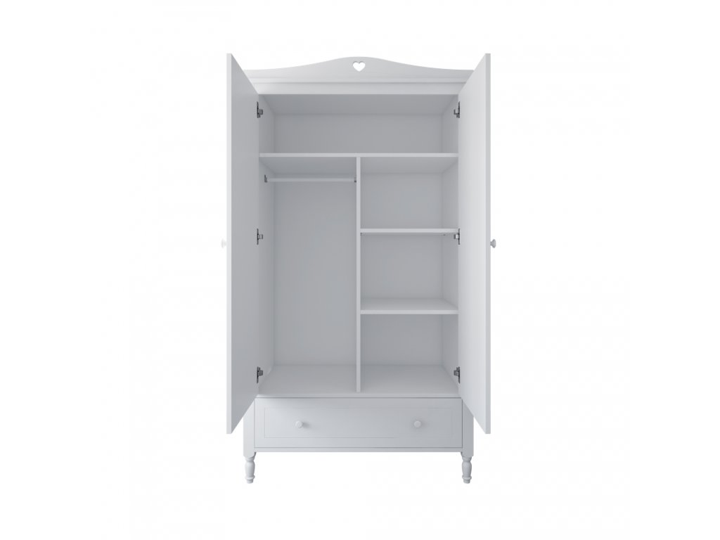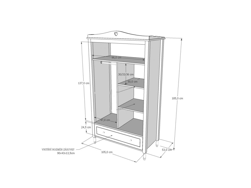 Dětská skříň stojí na čtyřech nožkách, díky čemuž je velmi stabilní a zároveň vám umožní udržovat čistotu i na tak obtížných místech.